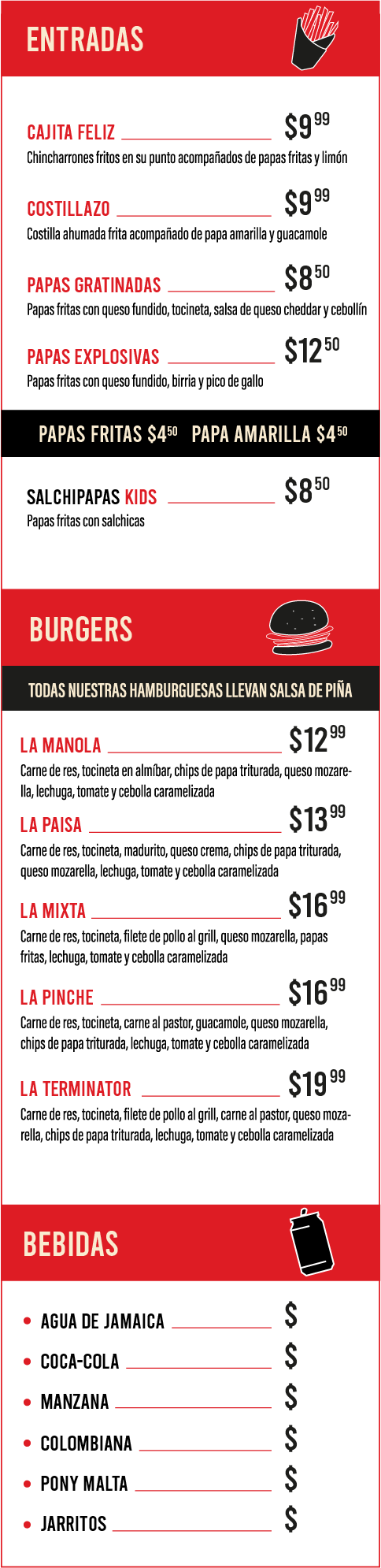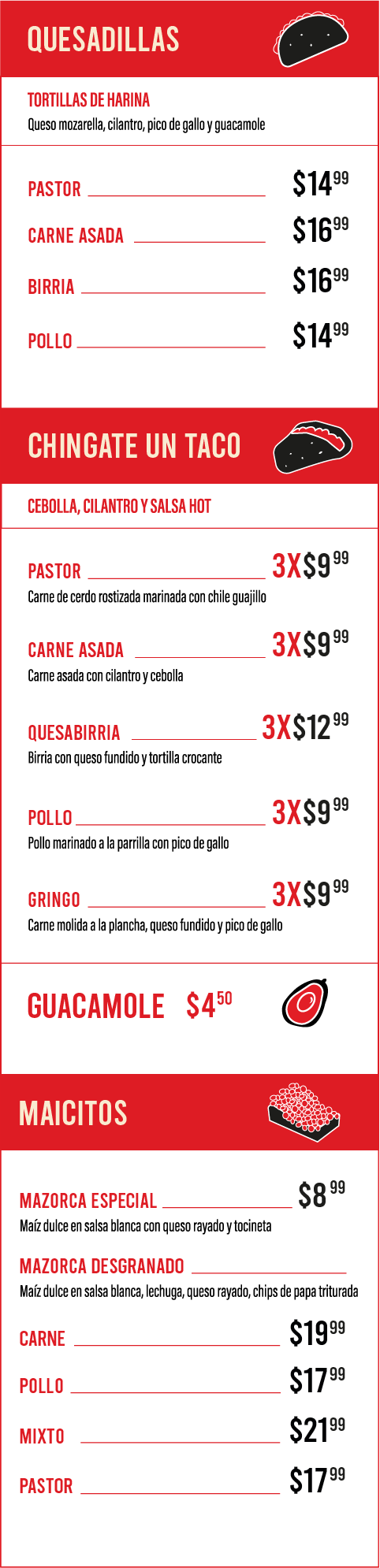 Nuestra carta no tiene mucha vuelta… pero sí mucho gusto.