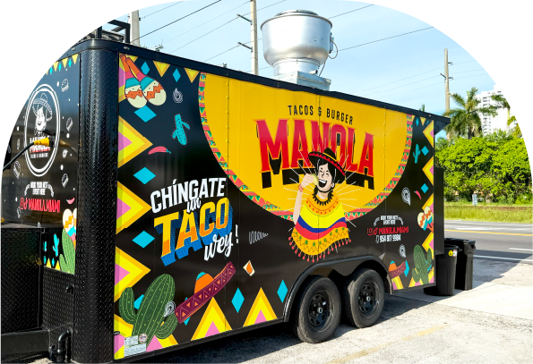 A simple vista parece un food truck, pero para nosotros es todo: cocina, escenario y punto de encuentro. Lo vas a ver girando por Brickell, Downtown, Doral y Coconut Grove, llevando sabor donde haga falta. Si lo encontrás, ya sabés que vas bien.